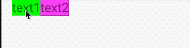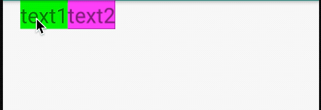 <TextView android:id="@+id/tv_text1" android:layout_width="wrap_content" android:layout_height="wrap_content" android:background="#0F0" android:text="text1" android:textSize="24sp" app:layout_constraintStart_toStartOf="parent" app:layout_constraintTop_toTopOf="parent" /> <TextView android:id="@+id/tv_text2" android:layout_width="wrap_content" android:layout_height="wrap_content" android:background="#F0F" android:text="text2" android:layout_marginStart="20dp" android:textSize="24sp" app:layout_constraintStart_toEndOf="@id/tv_text1" app:layout_constraintTop_toTopOf="parent" />