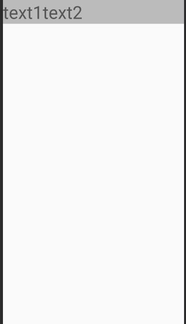 <?xml version="1.0" encoding="utf-8"?> <LinearLayout xmlns:android="http://schemas.android.com/apk/res/android" android:layout_width="match_parent" android:layout_height="match_parent" android:orientation="horizontal"> <LinearLayout android:layout_width="match_parent" android:layout_height="wrap_content" android:background="#bbb" > <TextView android:layout_width="wrap_content" android:layout_height="wrap_content" android:text="text1" android:textSize="40dp" /> <TextView android:layout_width="wrap_content" android:layout_height="wrap_content" android:text="text2" android:textSize="40dp" /> </LinearLayout> </LinearLayout>
